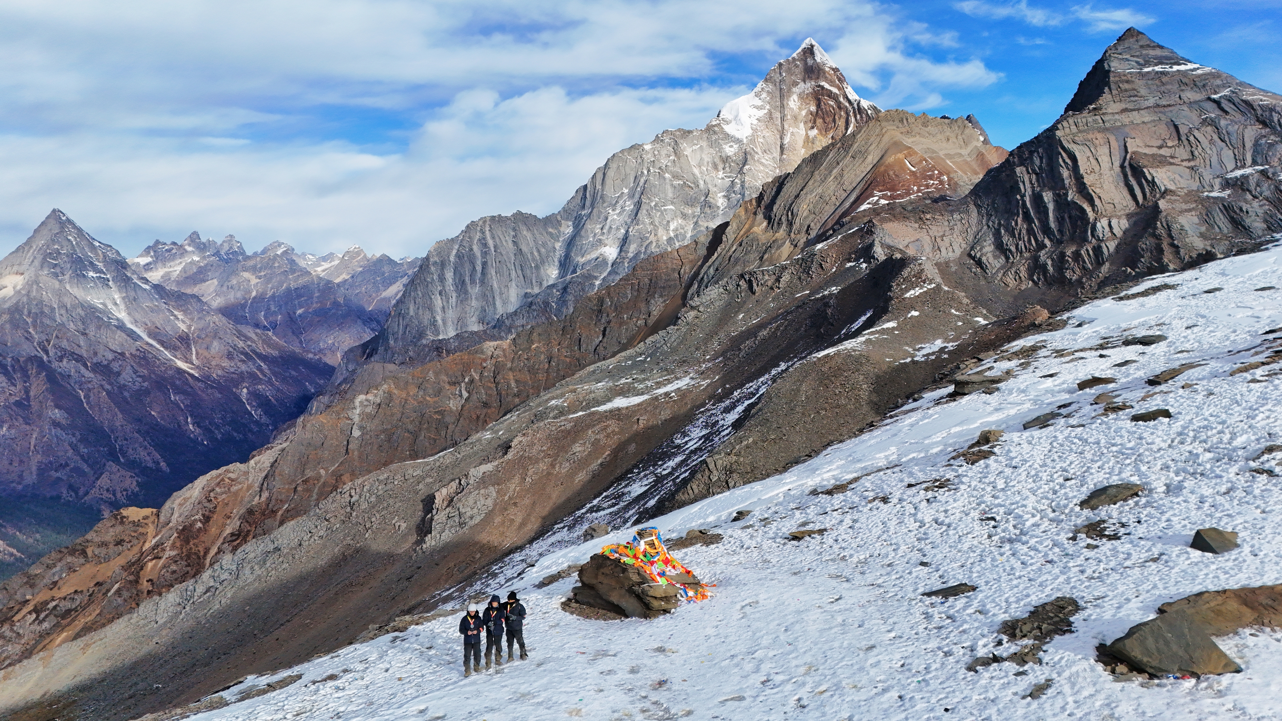 第二天早上八点,我们从四姑娘镇出发,向着大本营进发。出发前的兴奋让我忍不住一路拍照记录,沿途的风景也确实美得令人窒息。然而,随着海拔的不断升高,每一步都变得异常艰难。当海拔达到4000米左右时,风也越来越大,我的身体开始出现高反症状:头痛欲裂,行动变得迟缓。我意识到,可能是前半程走得过快,没有给身体足够的时间去适应海拔的变化。
